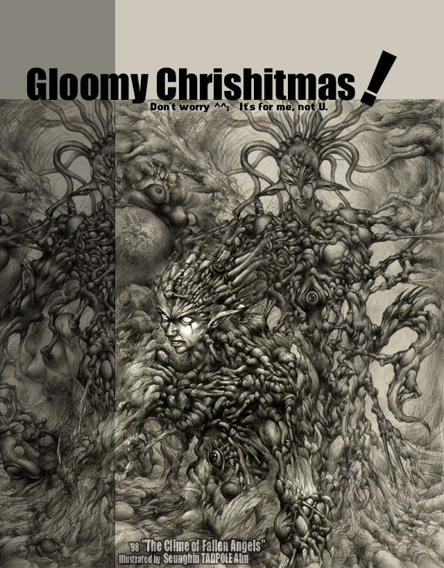 크리스마스네요 뭐라도 해야될것 같아 스케치 나부랭이로 크리스마스 카드를 급조해봅니다...흑흑 보시고 욕이나 하지 말아주셔요 --; 성탄엔 주위의 소외된 사람들에게 관심을... 여러분꼐는 메리 크리스마스!! ^o^ ps) 아참 이 스케치는... 페러랠 월드: 벨리알 이야기의 주인공 루인의 변신(변태..가 맞을까요 --;) 중 하나입니다...흑...