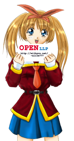 제가 이번에 홈페이지를 열었습니다. 제목은 LLP 무슨뜻인지는 직접 구경오셔서 보세요. 오셔서 욕을 하셔도 좋고 칭찬을 하시면 더욱 좋고요. 많이들 오셔 서 흔적도 남기시고 가세요. 항상 여러분을 환영합니다. 이 그림은 저의 홈페이지 요번주 커버걸 토끼머리 소녀 미아입니다. 무슨 연애게임 캐릭터같이 그려놓았는데 개인적으로 맘에드는군요. 그럼.. 주소는 http://withyou.net/~alice777 입니다.