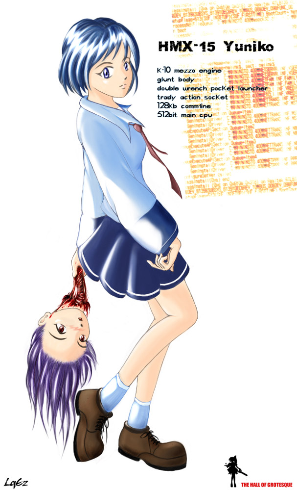 안녕하세요. 현우입니다. 사람을 잡는.. 로봇. HMX-15 Yuniko 입니다...(멀티 표절 이죠.-;) (-12 나 -13 처럼. 귀에 뭐가 붙어있지는 않습니다만..;;) 다소 엽기한 면이 있군요.. 등록되면 좋겠습니다. 이만요.~ (YG 분들의 평.. 기대하겠습니다..;;;)