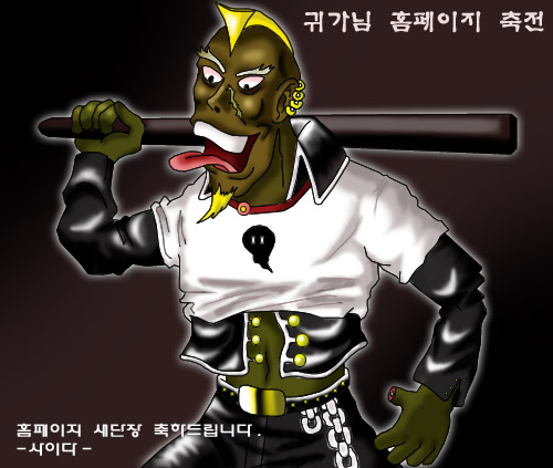 안녕하세요? 귀가님 홈페이지 새단장 축전용으로 그린 그림인데 비닐재질의 재킷을 나타낼수가없어서 엉성하게 때웠는데요. 가죽재킷위에 흰 반팔을 입은 흑인의 모습을 그렸습니다. 그럼이만..