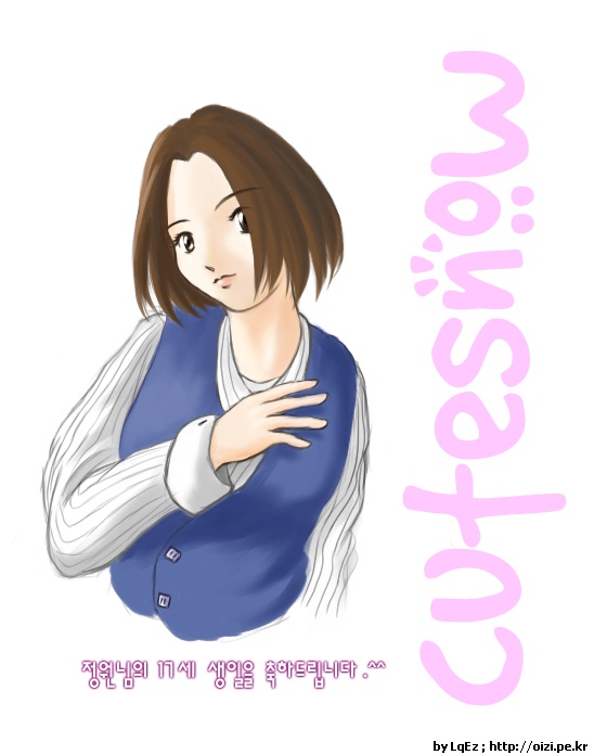안녕하세요 Ez입니다. 이미 생일은 지나셨지만, 그림을 뒤늦게 라도 올려봅니다. (과연 이번 시삽님은 화일을 빨리 등록시켜 주실지..) 분홍눈꽃님 생일 기념으로 그렸던 그림입니다. 글쎄 , 교복색을 물어보고 그렸는데, 정작 실제 교복에는 줄무늬가 없고 그냥 흰색이라시네요.. 줄무늬 그리느라 시간이 더 걸려 버렸는데... 이만요 -Ez